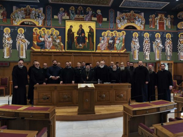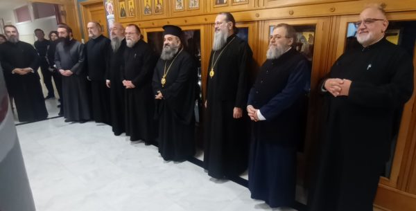 Ο Θεοφιλέστατος Αρχιγραμματεύς κ. Ιωάννης καλωσόρισε όλους τους επισκέπτες στην Ιερά Σύνοδο και τους μετέφερε τις εόρτιες ευχές του Μακαριωτάτου Αρχιεπισκόπου Αθηνών και πάσης Ελλάδος κ.κ. Ιερωνύμου.