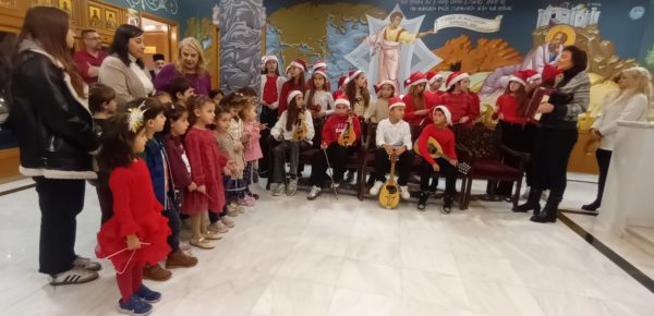 Χθες, Πέμπτη 18 Δεκεμβρίου, παρόντων του Αρχιγραμματέως της Ιεράς Συνόδου, Θεοφιλεστάτου Επισκόπου Σκιάθου κ. Ιωάννου, του Θεοφιλεστάτου Επισκόπου Καρυουπόλεως κ. Νεκταρίου, Υπευθύνου του Ιδιαιτέρου Γραφείου του Μακαριωτάτου, και του Θεοφιλεστάτου Επισκόπου Επιδαύρου κ. Νικοδήμου, έψαλαν τα κάλαντα το Τμήμα Μουσικής της Διευθύνσεως Επικοινωνίας της Ελληνικής Αστυνομίας, υπό την διεύθυνση της Αστυνόμου Α’ και Διοικήτριας Υπηρεσίας Μουσικής κ. Κατερίνας Αγρογιάννη, καθώς και χορωδία παιδιών από το 2ο Εργαστήριο Ειδικής Επαγγελματικής Εκπαίδευσης και Κατάρτισης (ΕΕΕΕΚ) Πειραιά «Άνοιξη».