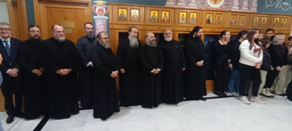 Ο Πανοσιολογιώτατος Αρχιγραμματεύς καλωσόρισε τους μαθητές και τα μέλη της παιδικής μαντολινάτας και της χορωδίας στην Ιερά Σύνοδο και τους μετέφερε τις εόρτιες ευχές του Μακαριωτάτου Αρχιεπισκόπου Αθηνών και πάσης Ελλάδος κ. Ιερωνύμου.