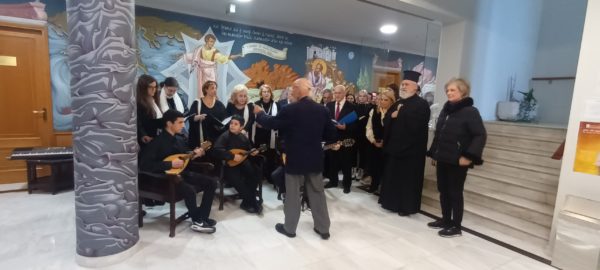Με μέριμνα του Κέντρου Στήριξης Οικογένειας (ΚΕ.Σ.Ο.) της Ιεράς Αρχιεπισκοπής Αθηνών, για ένατη συνεχόμενη χρονιά, ολιγομελής χορωδία και ορχήστρα, αποτελούμενη, κατά το παρόν έτος, από μαθητές του 6ου Λυκείου Αθηνών και κλιμάκιο της παιδικής μαντολινάτας και χορωδίας του Ι. Ν. Αγίου Παντελεήμονος Ιλισσού επισκέφθηκε σήμερα, Παρασκευή 22 Δεκεμβρίου, τα Γραφεία της Ιεράς Συνόδου της Εκκλησίας της Ελλάδος, της ΑΠΟΣΤΟΛΙΚΗΣ ΔΙΑΚΟΝΙΑΣ και της Ε.Κ.Υ.Ο.