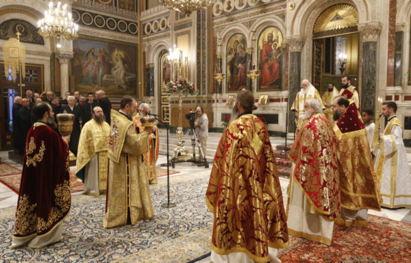Ο Αρχιεπίσκοπος το πρωί τέλεσε το μυστήριο της Θείας Ευχαριστίας στον Ιερό Μητροπολιτικό ναό Αθηνών και συλλειτούργησαν ο Μητροπολίτης Λαοδικείας κ. Θεοδώρητος, Διευθυντής του Γραφείου Εκπροσωπήσεως του Οικουμενικού Πατριαρχείου στην Αθήνα και ο Επίσκοπος Eυρίπου κ. Χρυσόστομος.