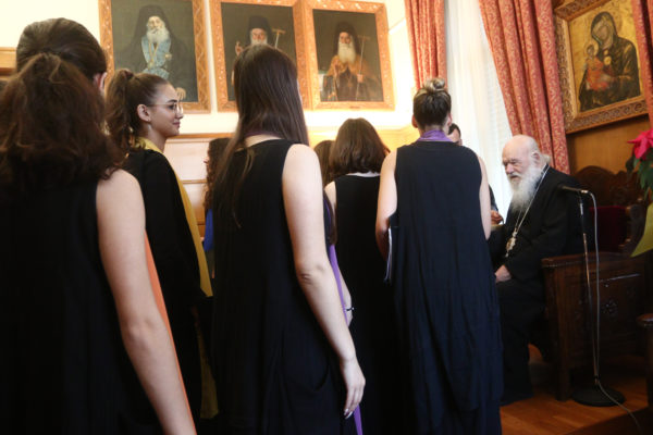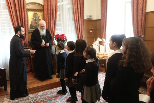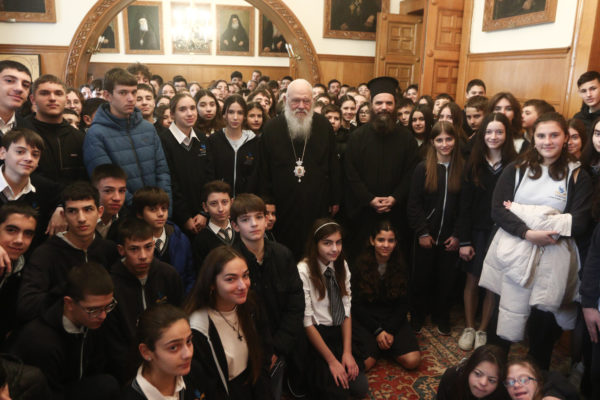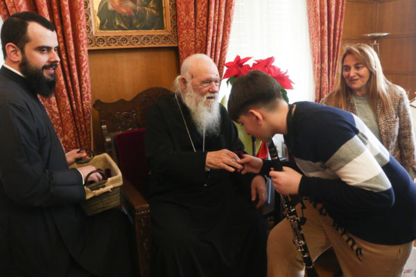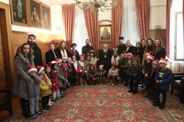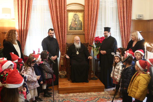 Συγκεκριμένα επισκέφθηκαν τον Αρχιεπίσκοπο μαθητές και μαθήτριες από το Γυμνάσιο Ιερού Ναού Μεταμορφώσεως του Σωτήρος Βριλησσίων και στην συνέχεια παιδιά από το Κέντρο Εκκλησιαστικής Διακονίας Οινοφύτων. Κατόπιν ευχήθηκαν στον Αρχιεπίσκοπο παιδιά Νηπιαγωγείου από το Βαφειαδάκειο Ίδρυμα κι αμέσως μετά τα παιδιά από το Ίδρυμα Περιθάλψεως Ατόμων με Νοητική Υστέρηση ή με σύνδρομο Down της Αρχιεπισκοπής «Μαρία Κόκκορη». Ακολούθησε η Ιόνιος Σχολή και το 30ο Γυμνάσιο και Γενικό Λύκειο Αθηνών, μαθητές από τα Εκπαιδευτήρια Λαμπίρη και την Λεόντειο Σχολή Νέας Σμύρνης, το 8ο Γυμνάσιο Αμαρουσίου και το Μουσικό Σχολείο Πτολεμαΐδος, όπου απέδωσαν τα κάλαντα και στην νοηματική γλώσσα.