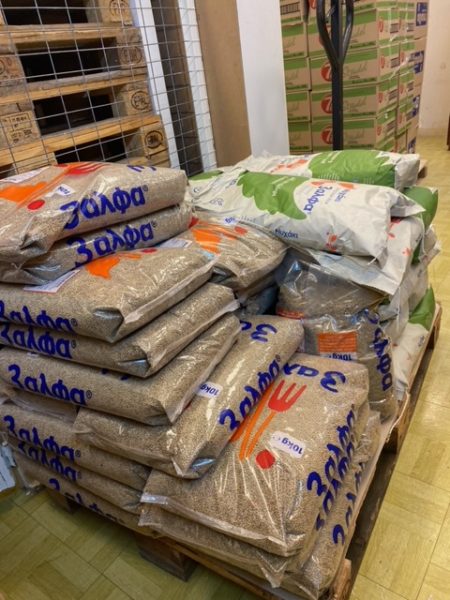 Οι εκπρόσωποι των οικογενειών που ανήκουν στην κατηγορία των ευπαθών ομάδων, έλαβαν από δύο τσάντες. Η πρώτη συνολικής αξίας άνω των 100€, περιελάμβανε είδη διατροφής(όσπρια, ρύζι, ντοματοπολτό, κρουασάν, γάλα, ψωμί του τοστ, αλεύρι για τα Χριστουγεννιάτικα γλυκά, αυγά,, μακαρόνια και noodles, μωρομάντηλα, πάνες, βρεφικό γάλα και κρέας προσφορά του μέλους του Δ.Σ του ΚΕ.Σ.