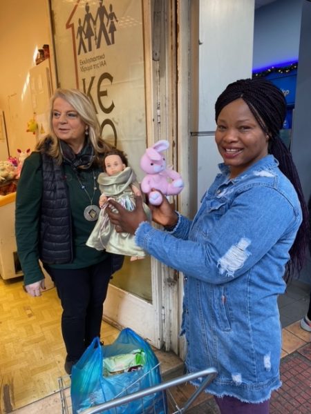 Ο πανοσιολογιώτατου Αρχιμανδρίτη & Γραμματέα της Συνοδικής Επιτροπής Εκκλησιαστικής Τέχνης π. Αθηναγόρα Σουπουρτζή καθώς και παιδικά παιχνίδια για τους μικρούς μας φίλους διότι τα Χριστούγεννα πάνω από όλα, είναι για τα παιδιά. Η δεύτερη τσάντα περιείχε 10lt καθαριστικό απολυμαντικό Επιφανειών και Σκευών μεγάλης αξίας.