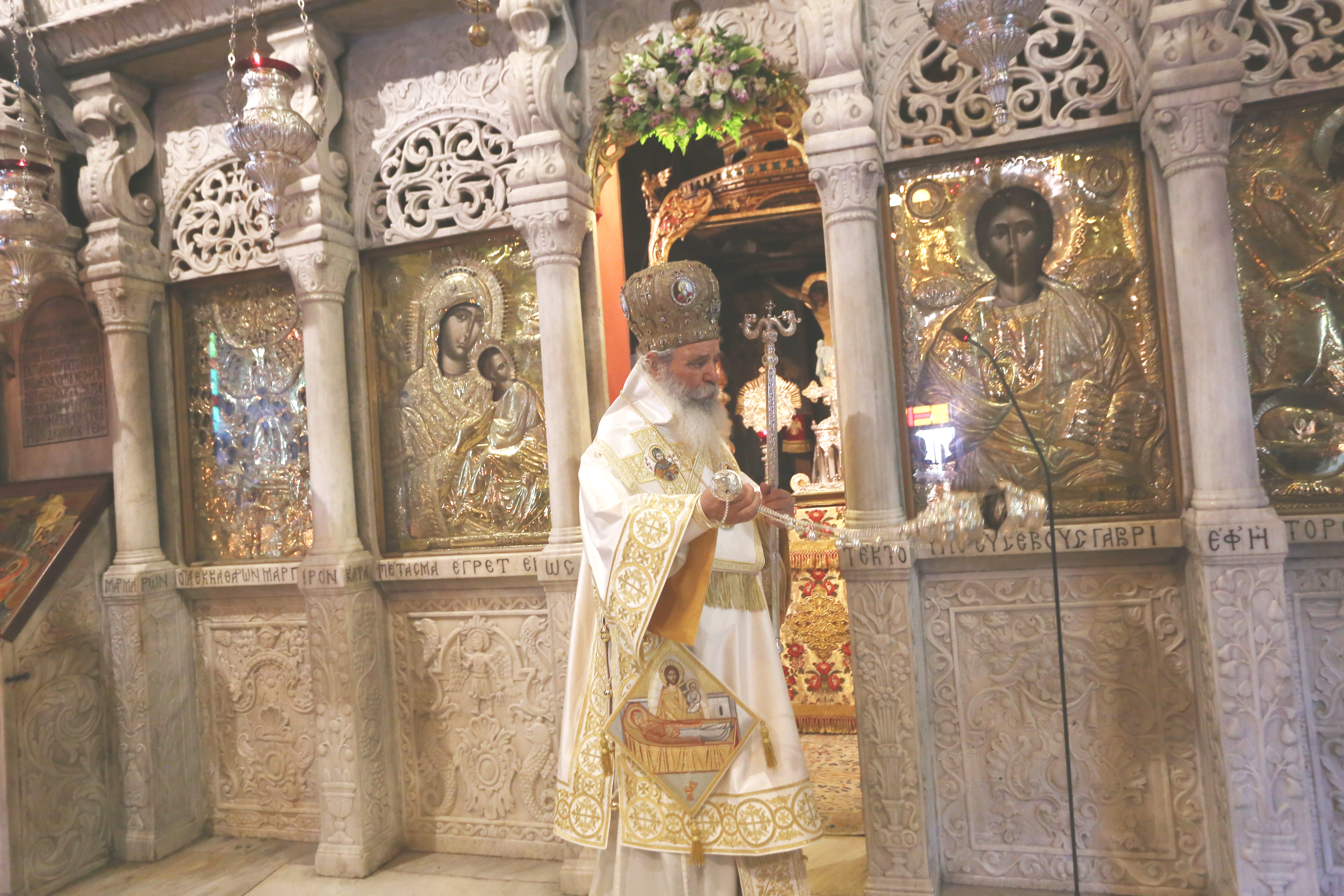 Σε άλλο σημείο της ομιλίας του ο Αρχιεπίσκοπος επεσήμανε ότι «αν υπήρχε ένας καλλιτέχνης ζωγράφος ή αγιογράφος σήμερα και του δίναμε μόνο τη φράση «χαίρε των δακρύων της Εύας η λύτρωσις», δηλαδή «Παναγία εσύ είσαι που σκούπισες τα δάκρυα της Εύας», θα είχαμε έναν πίνακα που θα μας έδειχνε την κουρασμένη, την απομακρυσμένη από το Θεό Εύα και την Παναγία να της σφουγγίζει τα δάκρυα» και συμπλήρωσε ότι η Παναγία είναι η γέφυρα που μας βοηθάει να ανέβουμε προς τον ουρανό. Η Παναγία είναι μεσίτρια, δέχεται τα παράπονα, τις εξομολογήσεις, τις παρακλήσεις μας και τις μεταβιβάζει».