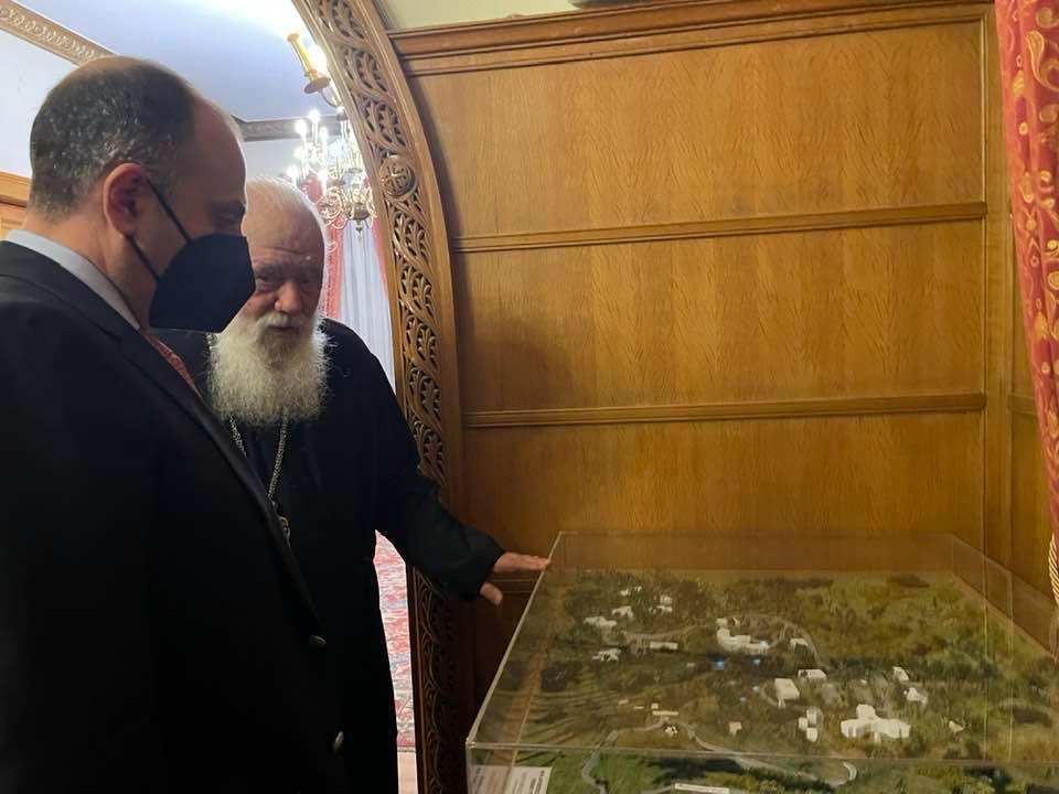 “Είχα την τιμή να συναντηθώ με τον Μακαριώτατο Αρχιεπίσκοπο Αθηνών και Πάσης Ελλάδος, κ. Ιερώνυμο, όπου συζητήσαμε εκτενώς και σε κλίμα αγαστής συνεργασίας, την εξέλιξη των έργων που περιλαμβάνονται στην Προγραμματική Σύμβαση του Υπουργείου μας με την Ιερά Αρχιεπισκοπή Αθηνών” αναφέρει σε ανάρτησή του ο κ. Καραγιάννης.