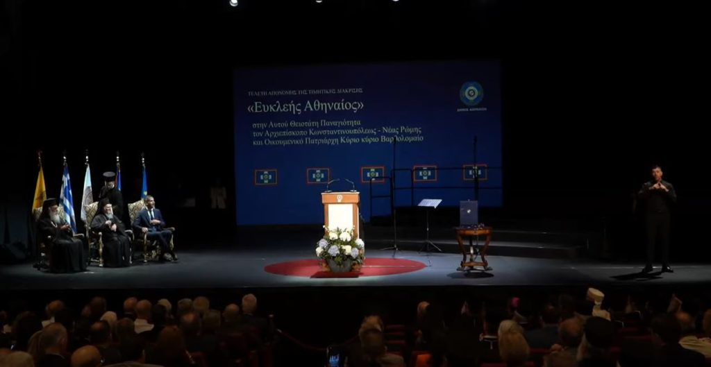 Ο Δήμος Αθηναίων τιμά τον Οικουμενικό Πατριάρχη κ.κ. Βαρθολομαίο, με τον τίτλο «Ευκλεής Αθηναίος», που απονέμεται για πρώτη φορά.