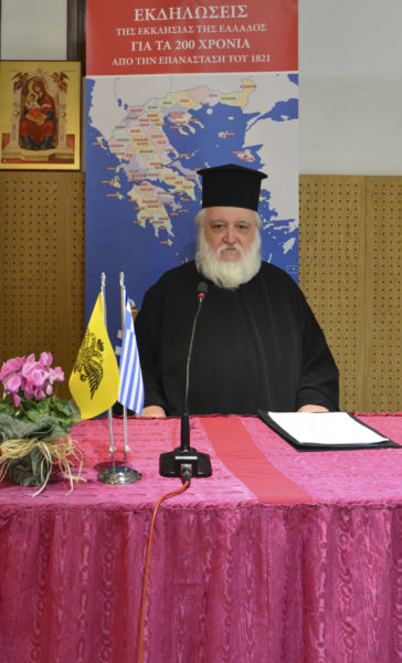 Εν συνεχεία, ο Σεβασμιώτατος Μητροπολίτης Δημητριάδος και Αλμυρού κ. Ιγνάτιος, Πρόεδρος της Ειδικής Συνοδικής Επιτροπής Πολιτισμικής Ταυτότητος, μέσω διαδικτυακής συνδέσεως, σημείωσε μεταξύ άλλων τα εξής: «Η Νεώτερη Ελληνική Ιστορία έχει πέσει κατά καιρούς θύμα ιδεολογικών ερμηνειών και παρεμηνειών. Τα Συνέδρια αυτά δίνουν την ευκαιρία να ακουσθούν διαφορευικές φωνές. Δεν επιδιώκουμε την ομοφωνία ή τη μονοτονία. Είμαστε, όμως, βέβαιοι ότι όλοι οι εισηγητές θα βασισθούν στις ιστορικες πηγές και θα μας βοηθήσουν να προσεγγίσουμε τα ιστορικά γεγονότα με σεβασμό στην αλήθεια και με πλούσια βιβλιογραφική τεκμηρίωση.»