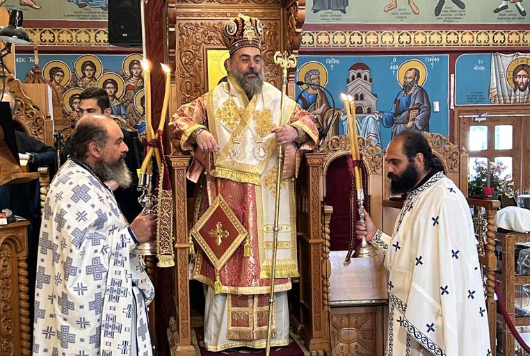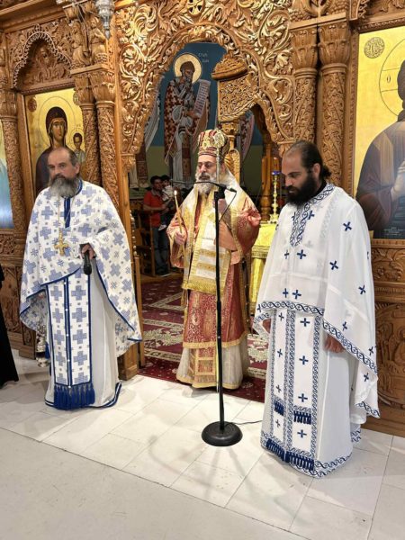 Ο Πανιερώτατος Μητροπολίτης Κυρηνείας κ. Χρυσόστομος χοροστάτησε στην Ακολουθία του Όρθρου και προέστη της Αρχιερατικής Θείας Λειτουργίας στον Ιερό Ναό Αρχαγγέλου Μιχαήλ στον προσφυγικό συνοικισμό των Λατσιών, την Κυριακή των Αγίων Πάντων, 15 Ιουνίου 2025.