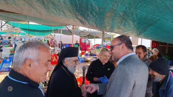 Την Λαϊκή αγορά στη Δερύνεια επισκέφτηκε το Σάββατο, 3 Δεκεμβρίου 2022 ο Πανιερώτατος Μητροπολίτης Κωνσταντίας και Αμμοχώστου κ. Βασίλειος συνοδευόμενος από τον δήμαρχο του ακριτικού Δήμου Άνδρο Καραγιάννη.