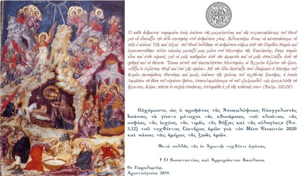 Τέλος, εύχεται όπως όλοι γίνουμε μέτοχοι της δυνάμεως, του πλούτου, της σοφίας, της ισχύος, της τιμής, της δόξας και της ευλογίας του τεχθέντος Σωτήρος.