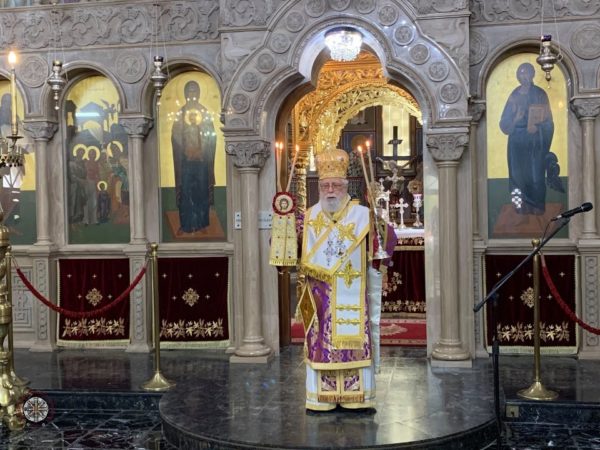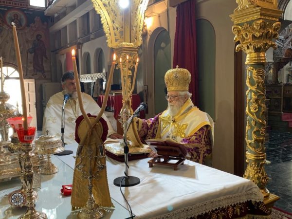 Στον Ιερό Ναό Παναγίας Χρυσαϊφυλιώτισσας, στη Λεμεσό, τέλεσε τη Θεία Λειτουργία και κήρυξε τον θείο λόγο την Ε’ Κυριακή των Νηστειών ο Μητροπολίτης Κωνσταντίας και Αμμοχώστου κ. Βασίλειος.