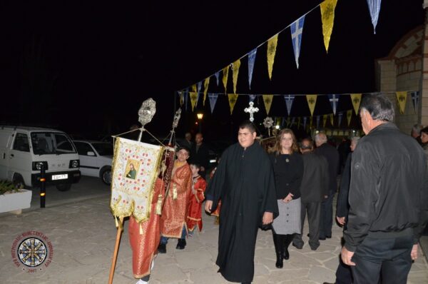 Ακολούθησε η λιτάνευση της ιεράς εικόνος των Αγίων και τμήματος λειψάνου γύρω από ναό με την παρουσία αγήματος του Στρατού ενώ παιάνιζε η μπάντα των κατηχητικών του ναού.