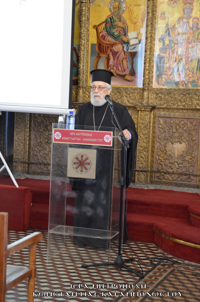 Παραθέτουμε στη συνέχεια τον χαιρετισμό του Πανιερωτάτου Μητροπολίτη Κωνσταντίας και Αμμοχώστου κ. Βασιλείου στην ημερίδα: