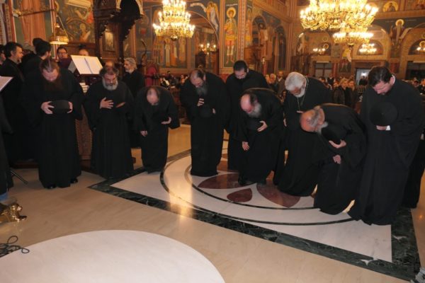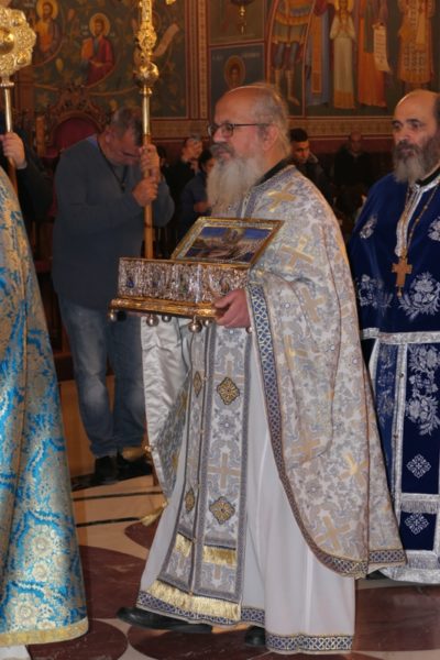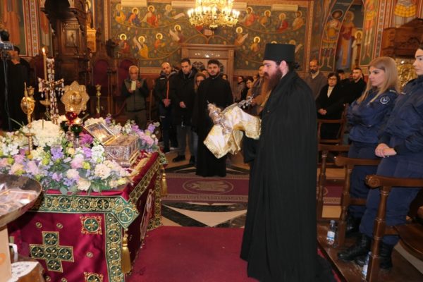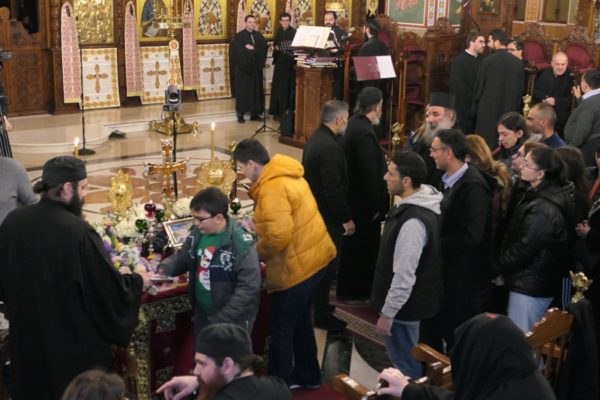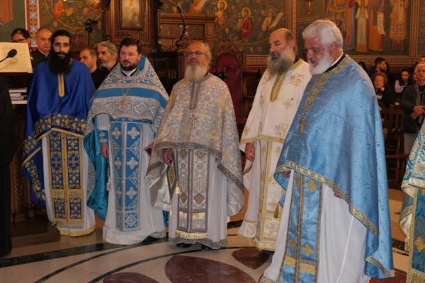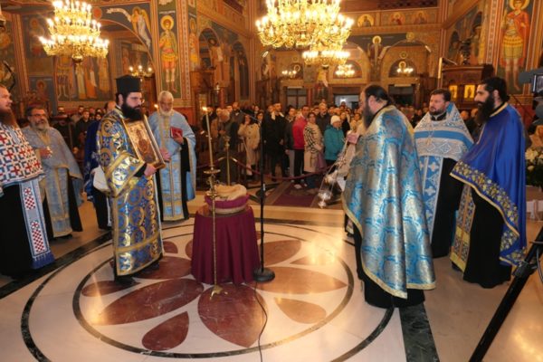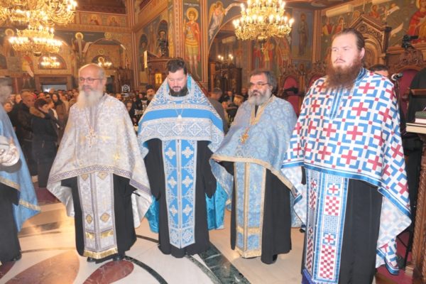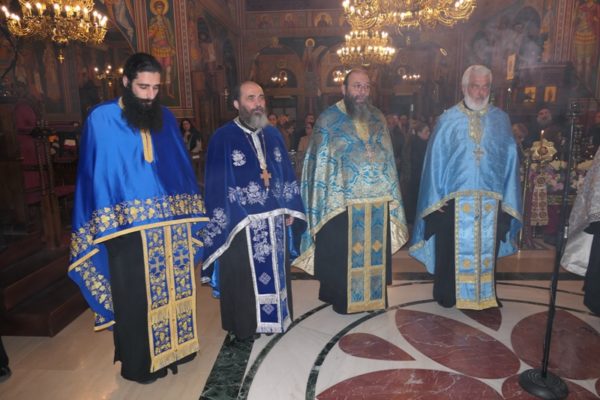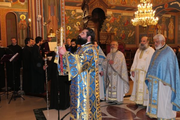 Της ιεράς Αγρυπνίας προΐσταστο ο πρωτοπρεσβύτερος Μιχαήλ Μιχαήλ και συλλειτούργησαν πατέρες από την Ιερά Μεγίστη Μονή Βατοπαιδίου και από την Ιερά Μητρόπολη.