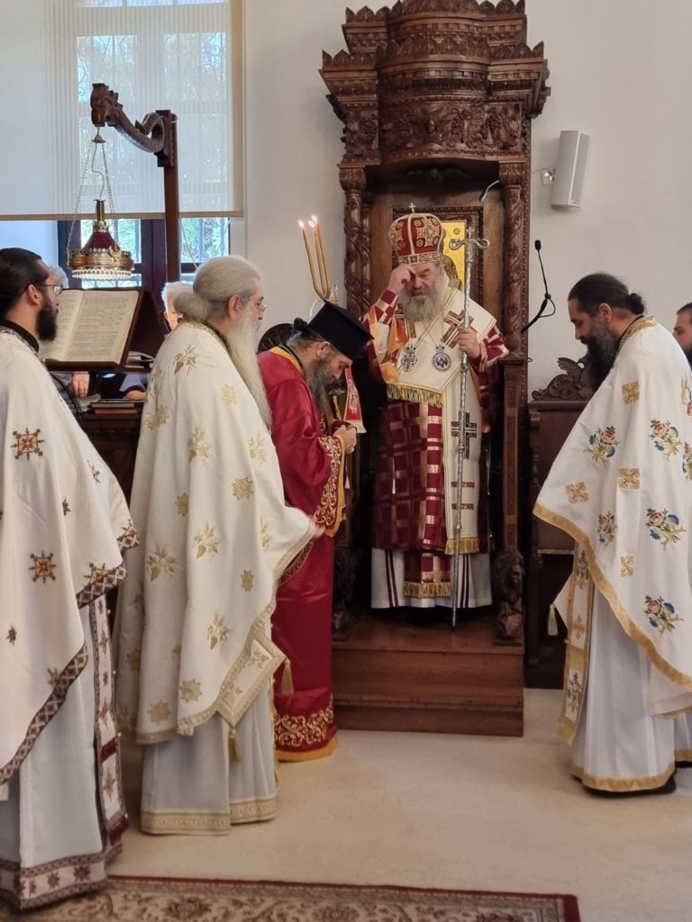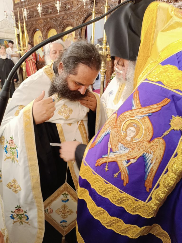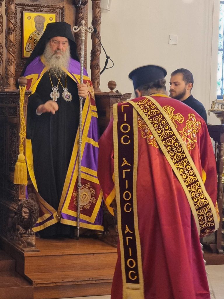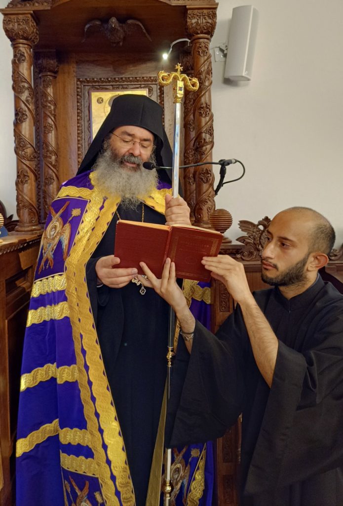 Κατά τη διάρκεια του Εσπερινού χειροθέτησε σε πρωτοπρεσβύτερο τον Ιερεά της κοινότητας, π. Ειρηναίο Θεοδώρου.