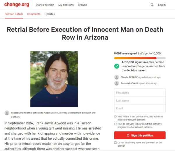 Η Ιερά Μητρόπολη Λεμεσού καλεί όσοι ευλαβείς πιστούς ενδιαφέρονται να υπογράψουν ηλεκτρονικά την αντίθεσή τους προς την θανατική ποινή εναντίον του θανατοποινίτη Frank J. Atwood (Αντώνιου) εισερχόμενοι διαδικτυακά στον Σύνδεσμο http://chng.it/Snmg2jfdwg όπου θα βρουν συγκεκριμένο link για να υπογράψουν.