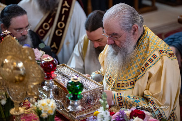 Κατά την Θεία Λειτουργία ο Πανιερώτατος ανέγνωσε ειδική ευχή ενώπιον της Αγίας Ζώνης. Από νωρίς το πρωί η ροή των προσκυνητών ήταν ασταμάτητη με εκατοντάδες να συρρέουν να προσκυνήσουν την Αγία Ζώνη.