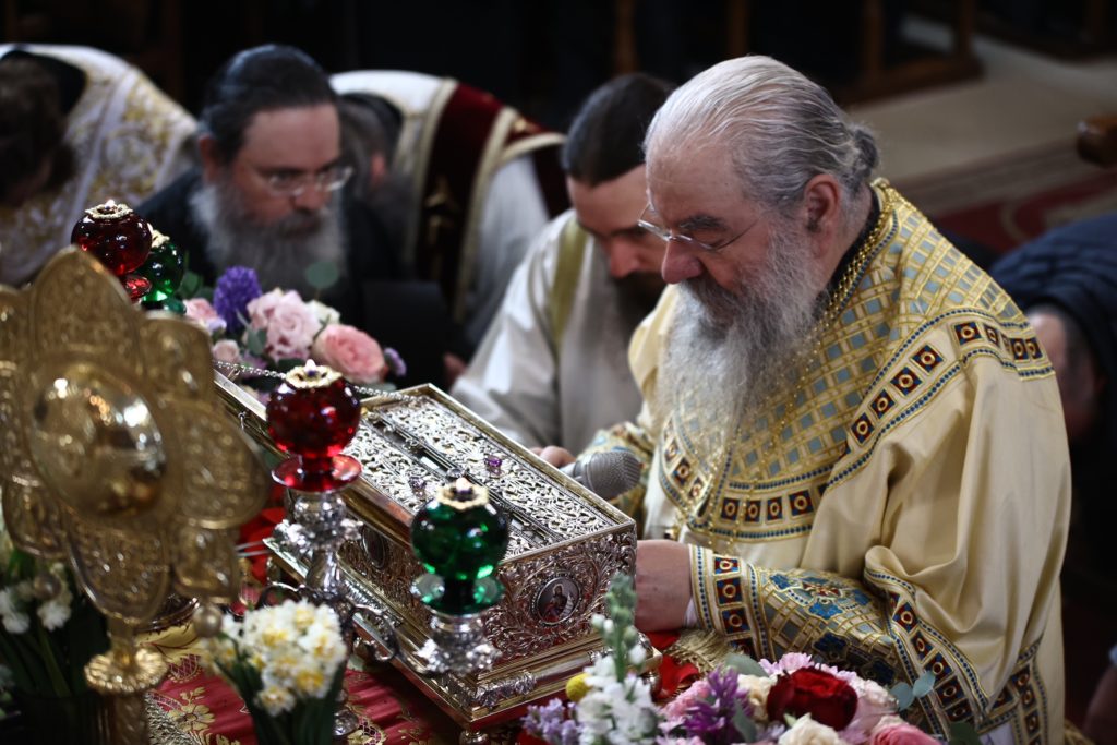Το πρωί της Τετάρτης, 14 Φεβρουαρίου, ο Πανιερώατος χοροστάτησε της Ακολουθίας του Όρθρου και στη συνέχεια προεξήρχε της Πανηγυρικής Θείας Λειτουργία που τελέστηκε στον Μητροπολιτικό Ναό Παναγίας Παντανάσσης Καθολικής Λεμεσού. Οι ιερές ακολουθίες τελέστηκαν ενώπιον της Αγίας Ζώνης της Παναγίας μας εκ της Ιεράς Μεγίστης Μονής Βατοπαιδίου, η οποία βρίσκεται στη Λεμεσό προς ευλογίας και ενίσχυση του πιστού λαού. Συλλειτουργούν οι Επίσκοποι Νεαπόλεως κ. Πορφύριος και Αμαθούντος κ. Νικόλαος, ο Καθηγούμενος της Ιεράς Μεγίστης Μονής Βατοαπιδίου, Αρχιμανδρίτης Εφραίμ, καθώς και κληρικοί της Μητροπόλεως.