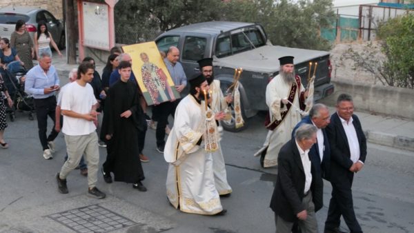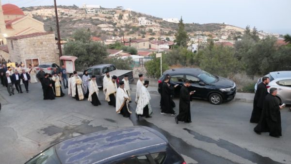Στη συνέχεια ακολούθησε Πανηγυρικός Αρχιερατικός Εσπερινός χοροστατούντος του Θεοφιλεστάτου Επισκόπου Αμαθούντος κ. Νικολάος. Μετά το πέρας του Εσπερινού ακολούθησε λιτάνευση της Ιεράς Εικόνος του Αγίου Τύχωνος και των Ιερών Λειψάνων των Αγίων Τύχωνος και Καλλινίκου σε παρακείμενους δρόμους της κοινότητας.
