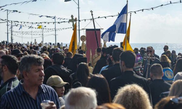 Με λαμπρότητα η Λεμεσός γιόρτασε σήμερα τα Θεοφάνεια, με τη θεία λειτουργία και την κατάδυση του Τιμίου Σταυρού, στη θαλάσσια περιοχή του παλιού λιμανιού της πόλης.