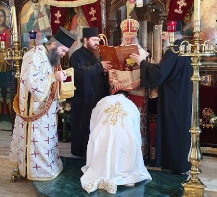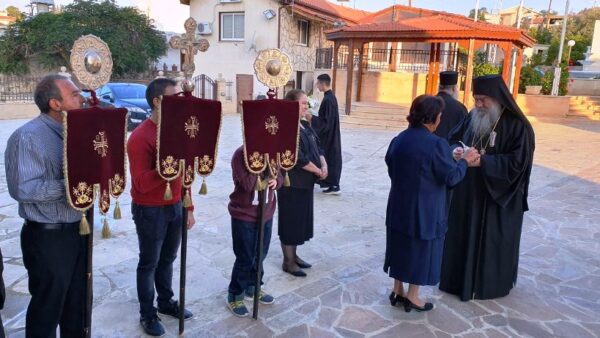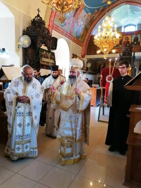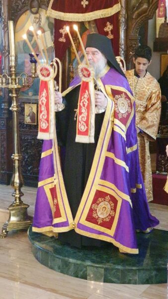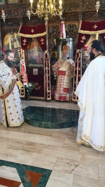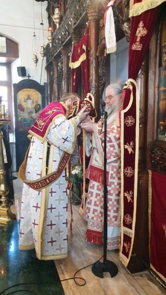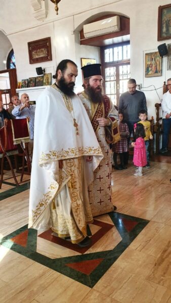 Στο τέλος της Θείας Λειτουργίας χειροθέτησε σε πνευματικό τον εφημέριο του ναού πρωτοπρεσβύτερο Γεώργιο Κόρτα.