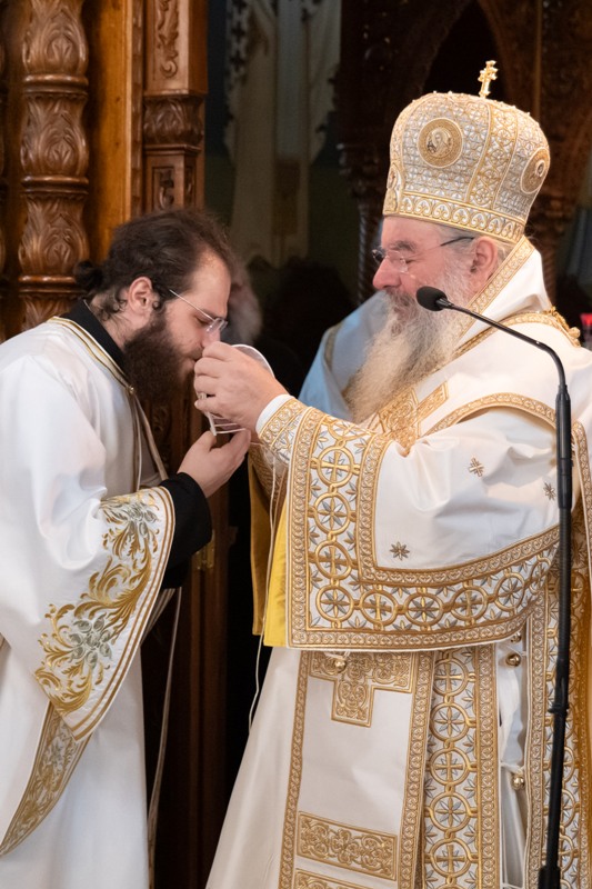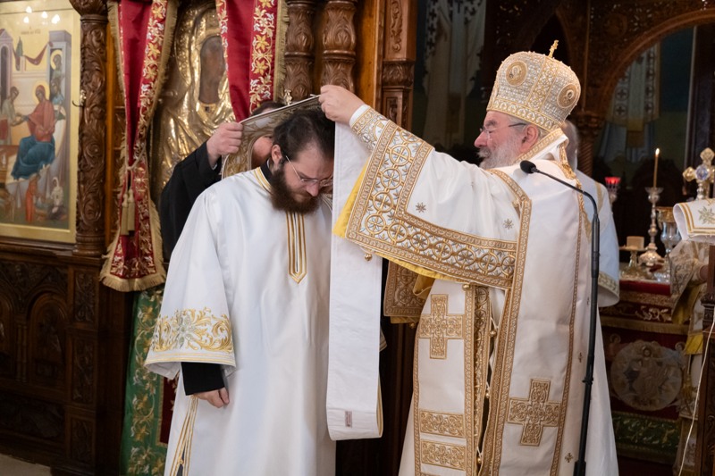 Προ της Δοξολογίας, ο Θεοφιλέστατος Επίσκοπος Νεαπόλεως κ. Πορφύριος χειροθέτησε σε υποδιάκονο τον ευλαβέστατο κ. Συμεών Ελπιδοφόρου ενώ, κατά τη διάρκεια της θείας Λειτουργίας, ο Πανιερώτατος Μητροπολίτης κ. Αθανάσιος χειροτόνησε σε διάκονο τον π. Συμεών.