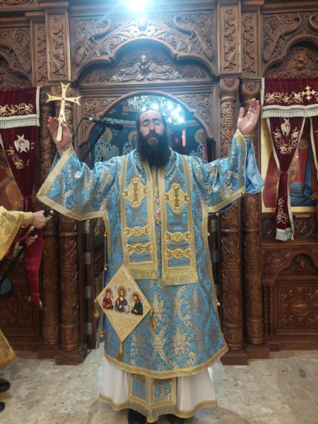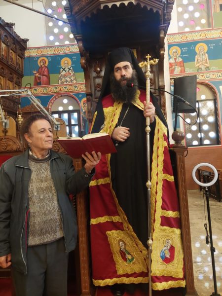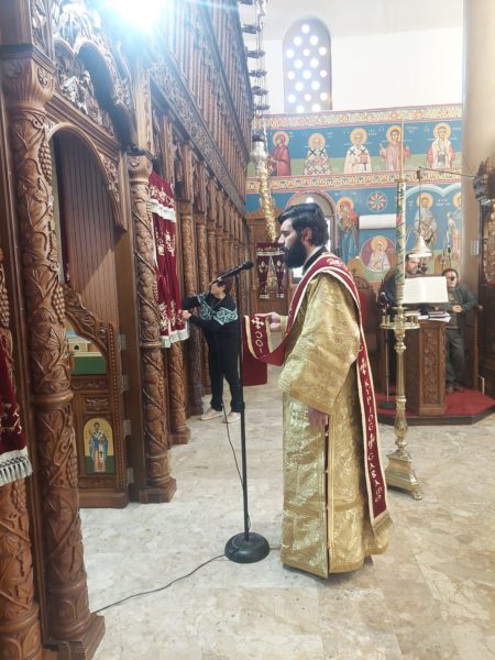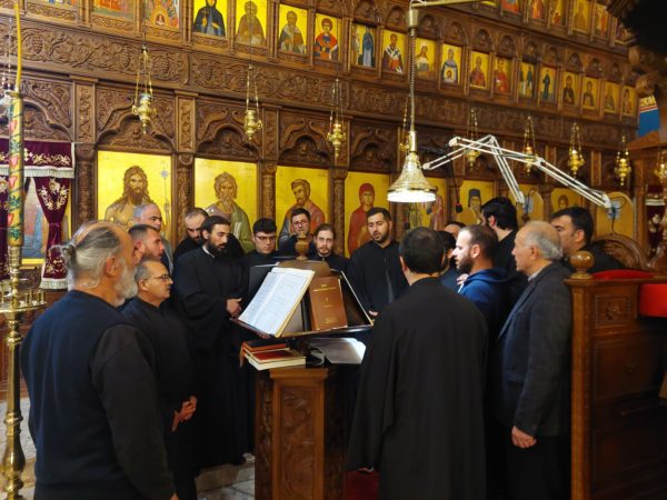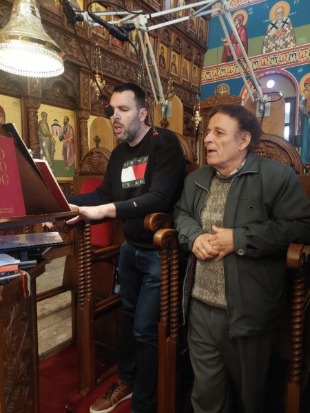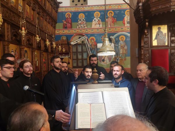 Το «Άξιον Εστίν» από τον ιεροψάλτη Νικόλαο ενώπιον της Αγίας Ζώνης κατά τη σημερινή Θεία Λειτουργία: