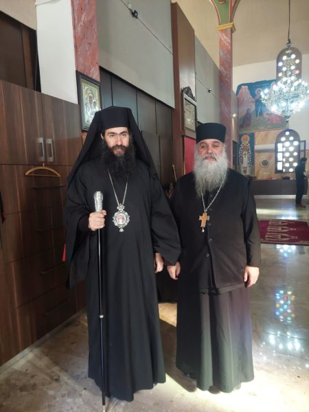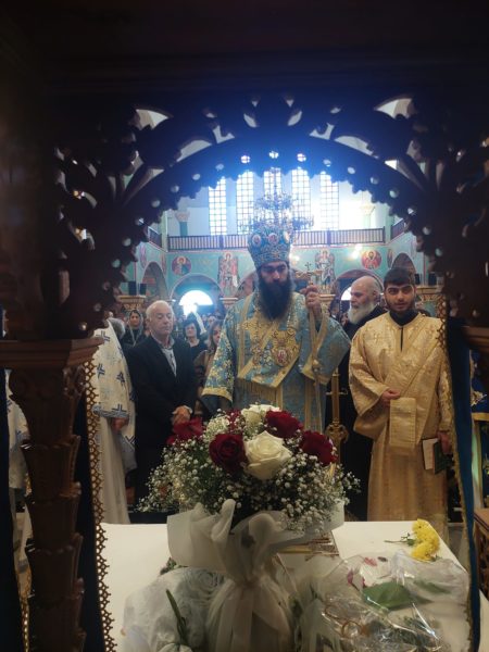 Παράκληση προς την Παναγία από τον Μητροπολίτη Πάφου κ. Τυχικό και τον π. Γεώργιο της Iεράς Mονής Βατοπαιδίου κατά τη Θεία Λειτουργία προς τιμήν της Αγίας Ζώνης: