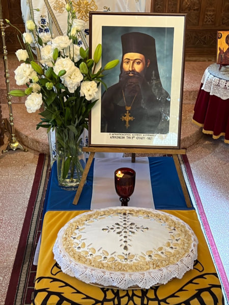Στο τέλος της Θείας Λειτουργίας, ο Πανιερώτατος τέλεσε τα μνημόσυνα του Εθνομάρτυρος Κυπριανού και των συν αυτώ, που μαρτύρησαν την 9η Ιουλίου 1821, των ηρωικώς αγωνισαμένων και πεσόντων κατά τη διάρκεια του πραξικοπήματος 1974, των θυμάτων από την έκρηξη στο Μαρί (11 Ιουλίου 2011), καθώς και το τεσσαρακονθήμερο μνημόσυνο του Μητροπολίτη Σασίμων Γενναδίου, με τον οποίο ο Πανιερώτατος είχε άριστη συνεργασία με τον μακαριστό στο διάλογο με τους Λουθηρανούς.