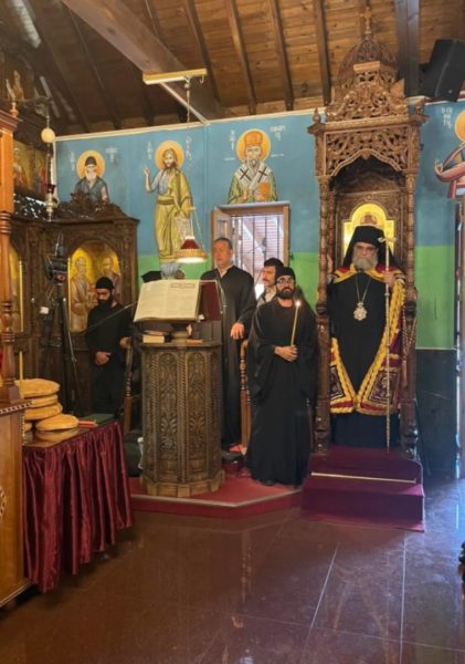 Τον Πανιερώτατο πλαισίωναν ο πνευματικός της Μονής, Αρχιμανδρίτης Ηρακλείδιος, ο Εφημέριος της Μονής, Οικονόμος Σαμουήλ, και οι Ιεροδιάκονοι Αρσένιος, Μακάριος, Σάββας και Ησαΐας.