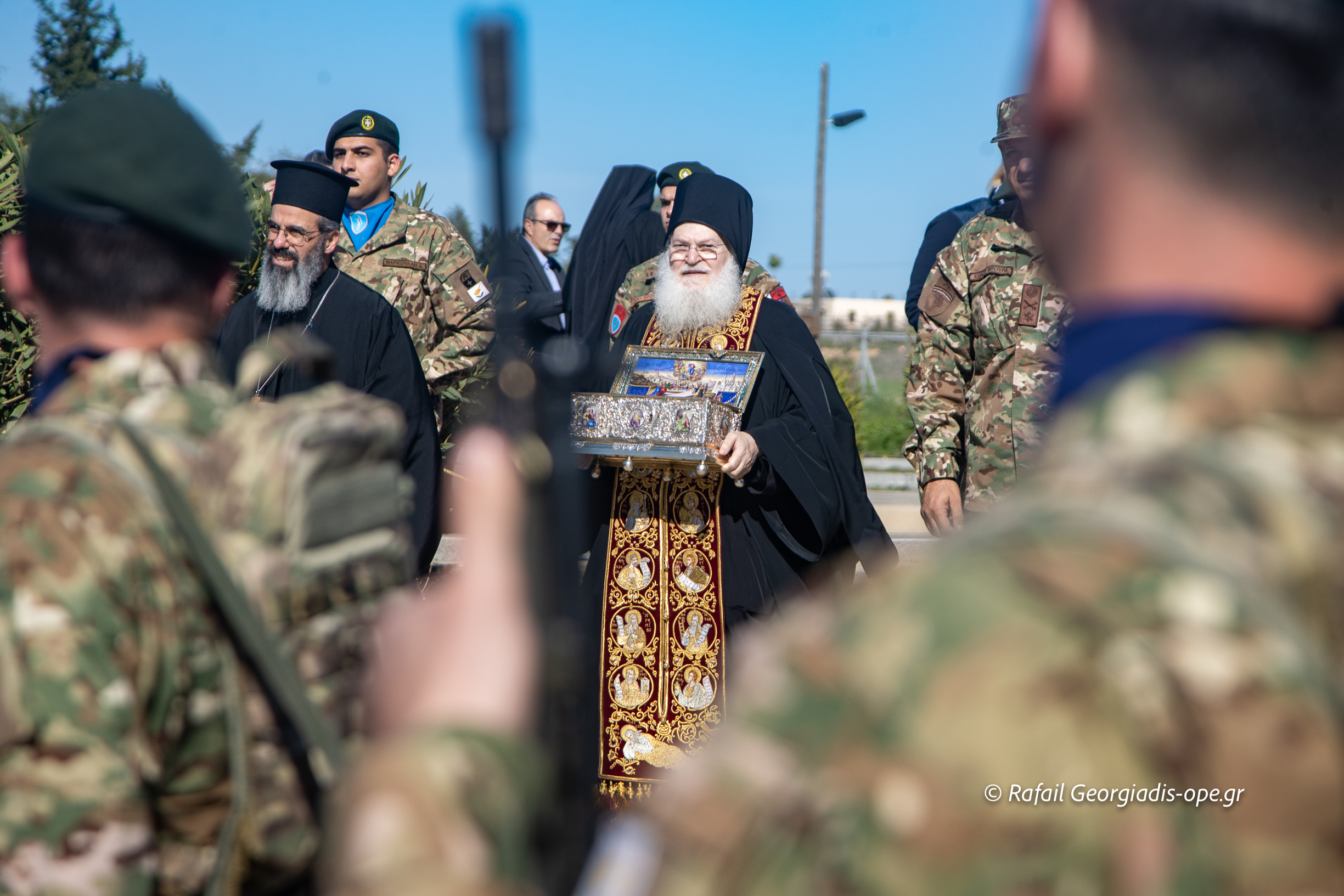 Την Αγία Ζώνη υποδέχθηκαν με τιμές από το άγημα απόδοσης τιμών, ο Διοικητής, ο Υποδιοικητής και στελέχη του στρατοπέδου.