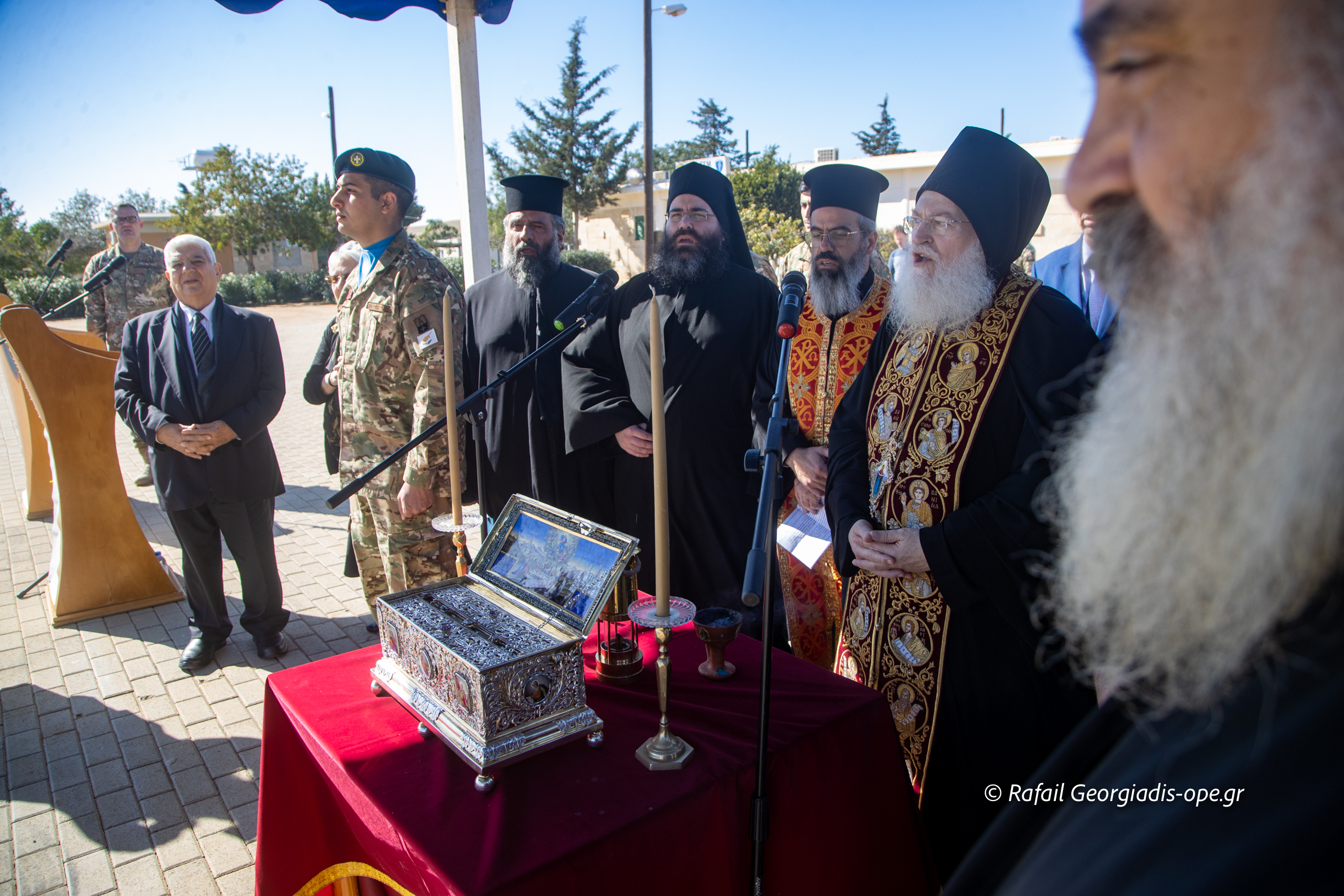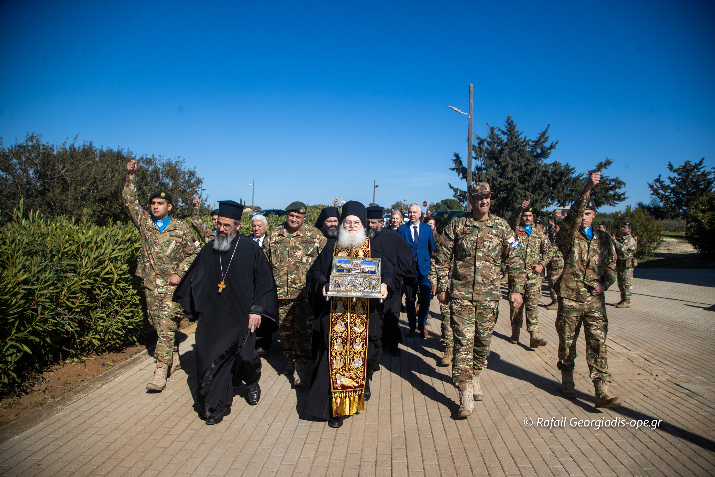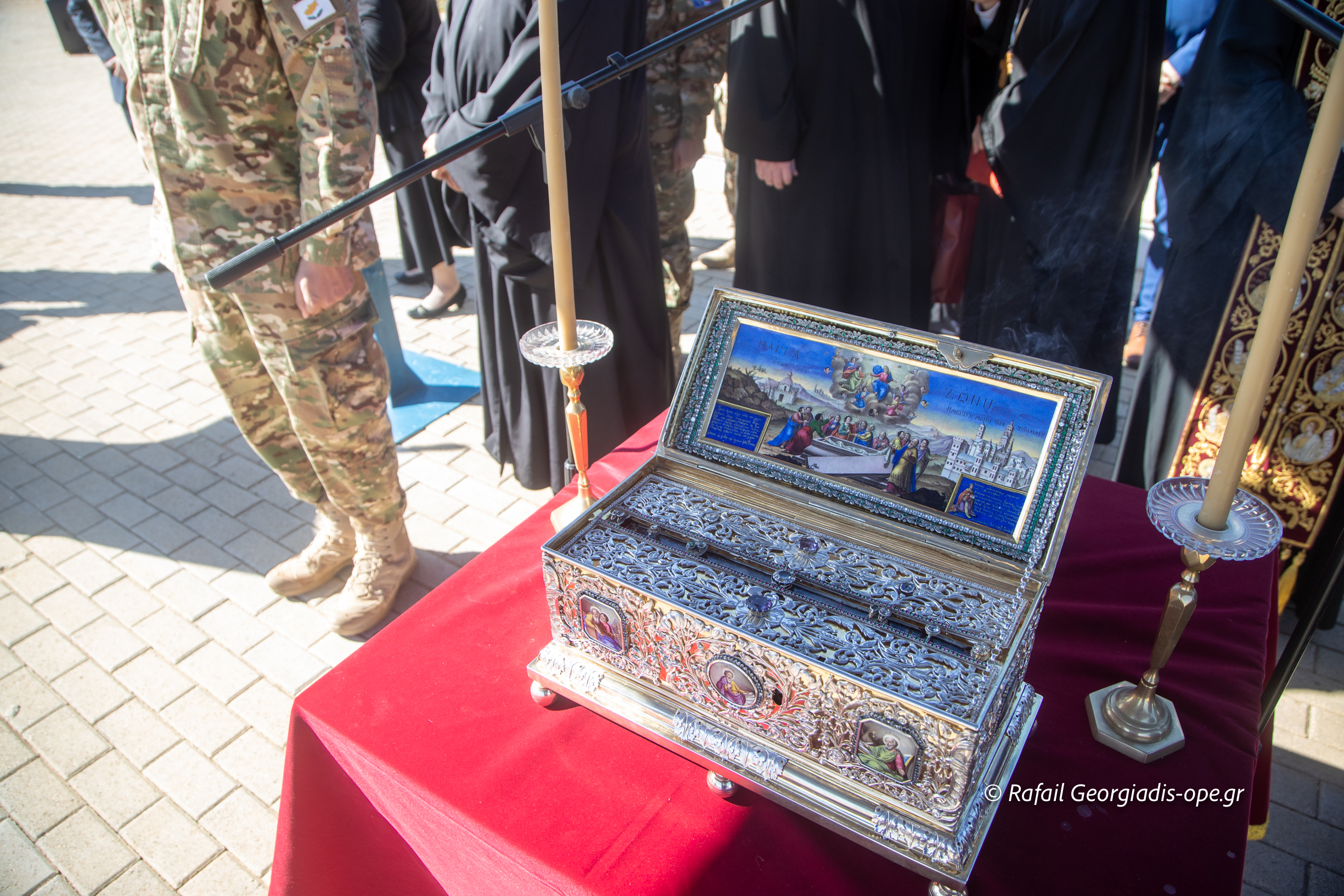 Την Αγία Ζώνη υποδέχθηκαν με τιμές από το άγημα απόδοσης τιμών, ο Διοικητής, ο Υποδιοικητής και στελέχη του στρατοπέδου.