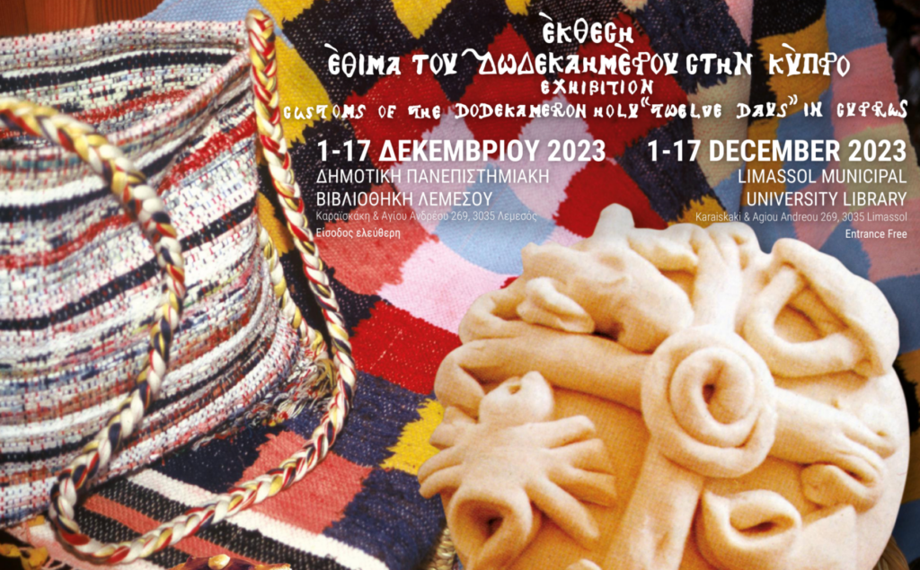 Ο Θεοφιλέστατος Επίσκοπος Αμαθούντος κ. Νικόλαος θα απευθύνει χαιρετισμό στην Έκθεση «Έθιμα του Δωδεκαημέρου στην Κύπρο» η οποία εγκαινιάζται την Παρασκευή, 1η Δεκεμβρίου 2023 στις 18.30, στην Αίθουσα Εκδηλώσεων της Δημοτικής Πανεπιστημιακής Βιβλιοθήκης Λεμεσού.