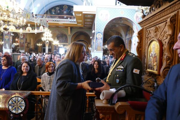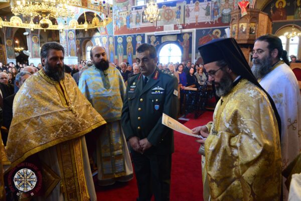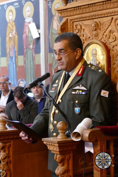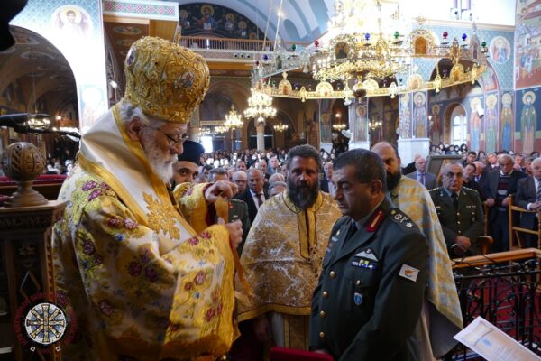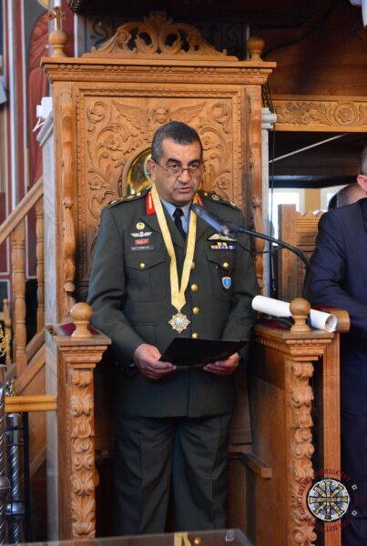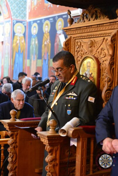 Πριν το πέρας της Θείας Λειτουργίας, απομενήθηκε η ανωτάτη τιμητική διάκριση της Ιεράς Μητροπόλεως Κωνσταντίας και Αμμοχώστου, του παρασήμου του Αγίου Επιφανίου εφόρου και προστάτου αυτής στον αξιότιμο Ταξίαρχο κ. Γεώργιο Μαυρομμάτη, Διοικητή της 7ης Ταξιαρχίας Πεζικού.