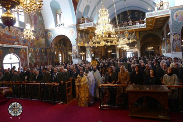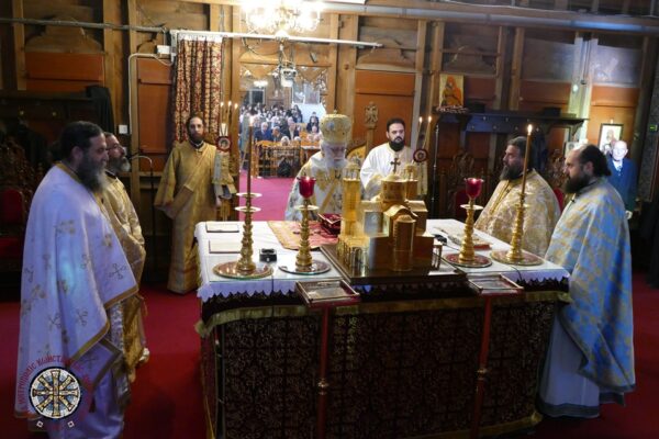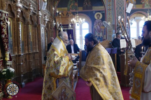 Της Θείας Λειτουργίας στον Μητροπολιτικό Ιερό Ναό του Αγίου Γεωργίου προεξήρχε ο επιχώριος Μητροπολίτης κ. Βασίλειος πλαισιούμενος από τον πρωτοσύγκελλο της Ιεράς Μητροπόλεως Αρχιμ. Αυγουστίνο Κκαρά και το ιερατείο του ναού.
