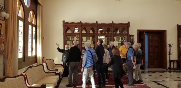 Οι περιηγητές ενημερώθηκαν από τον Πανιερώτατο Μητροπολίτη Κωνσταντίας και Αμμοχώστου κ. Βασίλειο για την ιστορία της Ιεράς Μητροπόλεως καθώς επίσης και για τις δράσεις της.