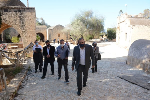 Τα έργα αποκατάστασης και μετατροπής του Μεσαιωνικού Μοναστηριού της Αγίας Νάπας σε Αρχαιολογικό και Μουσειακό χώρο, επιθεώρησε σήμερα ο Πανιερώτατος Μητροπολίτης Κωνσταντίας και Αμμοχώστου κ. Βασίλειος μαζί με τον Υπουργό Μεταφορών, Συγκοινωνιών και ΄Εργων της Κύπρου κ. Γιάννη Καρούσο, τον δήμαρχο Αγίας Νάπας Χρίστο Ζαννέτο και τη Διευθύντρια του Τμήματος Αρχαιοτήτων κ. Μαρίνα Ιερωνυμίδου.