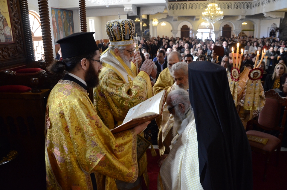 Πριν την απόλυση, τελέστηκε η χειροθεσία εις Αρχιμανδρίτη του σεβαστού και πολιού ιερέως της κοινότητας πατρός Χρυσοστόμου Κωνσταντίνου.