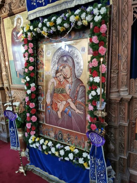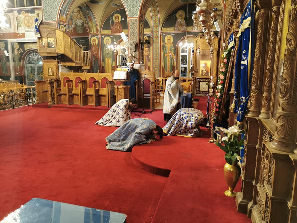 Οι ιερείς του Ναού, όπως μαρτυρούν και οι φωτογραφίες, έκλειναν γόνυ προς την Υπεραγία Θεοτόκο ζητώντας να παύσει η πανδημία του κορωνοϊού που δοκιμάζει την ανθρωπότητα.