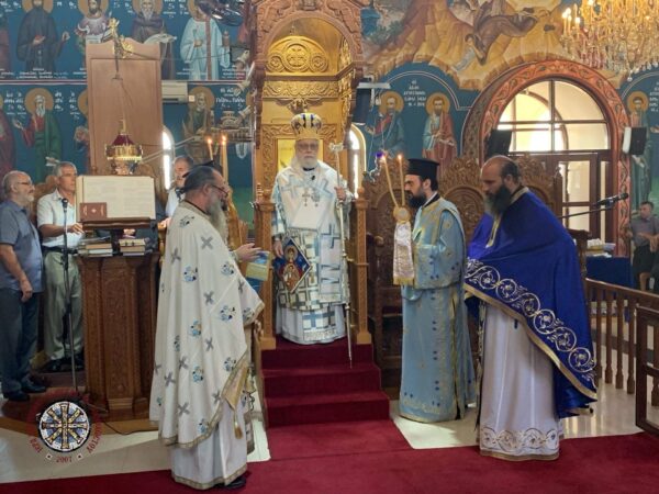 Ανήμερα της θεομητορικής εορτής της Κοιμήσεως της Θεοτόκου, τελέστηκε Αρχιερατική Θεία Λειτουργία προϊσταμένου του Πανιερωτάτου Μητροπολίτη Κωνσταντίας κ. Βασιλείου στον πανηγυρίζοντα Ιερό Ναό Παναγίας Ελεούσης Λιοπετρίου.
