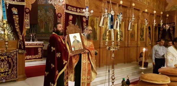 Ακολούθησε η λιτάνευση της ιεράς εικόνας στις οδούς γύρω από τον ναό.