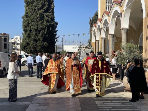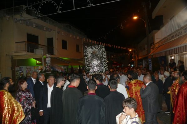 Το απόγευμα της Πέμπτης 2 Νοεμβρίου 2023, τελέστηκε ο Μέγας Πανηγυρικός Αρχιερατικός Εσπερινός χοροστατούντος του επιχώριου Μητροπολίτη Κωνσταντίας και Αμμοχώστου κ. Βασιλείου, συμπαραστούμενου από τον Πρωτοσύγκελλο Αρχιμανδρίτη Αυγουστίνο Κκαρά και το ιερατείο του ναού αλλά και των όμορων ναών, παρουσία των Δημοτικών Αρχών, εκπροσώπων των Σωμάτων Ασφαλείας και πλήθους κόσμου.