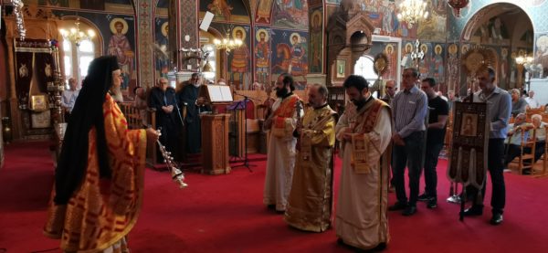 Μετά το πέρας της Θείας Λειτουργίας ακολούθησε η λιτάνευση της Ιεράς Εικόνας γύρω από το Nαό.