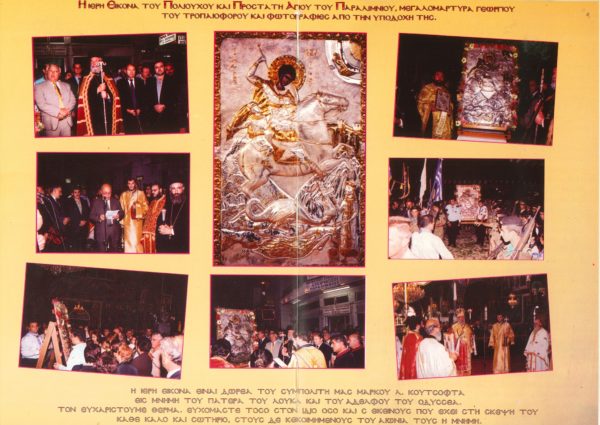 Να σημειωθεί ότι φέτος συμπληρώνονται 20 χρόνια, όταν ο αοίδιμος Αρχιεπίσκοπος Κύπρου κυρός Χρυσόστομος ο Β’, ως Μητροπολίτης Πάφου, επισκέφθηκε το Παραλίμνι και προεξήρχε των ιερών ακολουθιών για τη μνήμη του πολιούχου και την υποδοχή της Ιεράς Εικόνας δωρεά του αείμνηστου Μάρκου Λ. Κουτσόφτα.