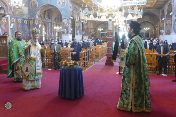Με κατάνυξη, τελέστηκε σήμερα Κυριακή της Σταυροπροσκυνήσεως, 4 Απριλίου, ο Όρθρος και η Λειτουργία στον Μητροπολιτικό Ιερό Ναό του Αγίου Γεωργίου, προεξάρχοντος του επιχώριου Μητροπολίτου κ. Βασιλείου.