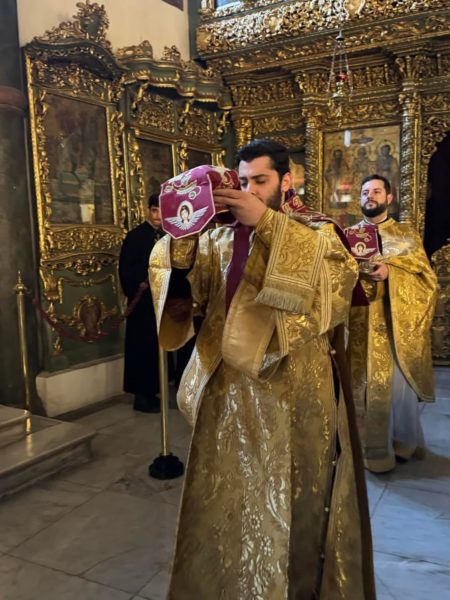 Στο Ιερό Βήμα παρέστη συμπροσευχόμενος ο Οικουμενικός Πατριάρχης κ.κ. Βαρθολομαίος και Αρχιερείς του θρόνου.