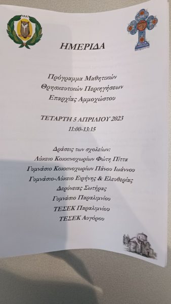 Συγχαίρουμε θερμά τις ομάδες των μαθητών από τα σχολεία της επαρχίας Αμμοχώστου, όπως επίσης και τους συμμετέχοντες εκπαιδευτικούς, οι οποίοι όλοι μαζί ασχολήθηκαν με το σημαντικό αυτό εκκλησιαστικό μνημείο.