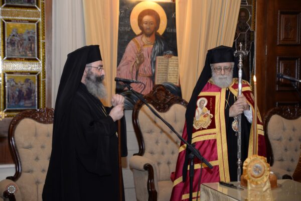 Εκ μέρους των παρισταμένων το λόγο έλαβε ο Θεοφιλέστατος Επίσκοπος Αμαθούντος κ. Νικόλαος, ο οποίος διερμηνεύοντας τα αισθήματα όλων ευχήθηκε υγεία και μακροημέρευση στον ποιμενάρχη μας και να τον αξιώσει ο Θεός σύντομα να επιστρέψει και να εγκατασταθεί στην φυσική έδρα της Μητροπόλεως Κωνσταντίας, στην πολυφίλητη και αλησμόνητη Αμμόχωστο.