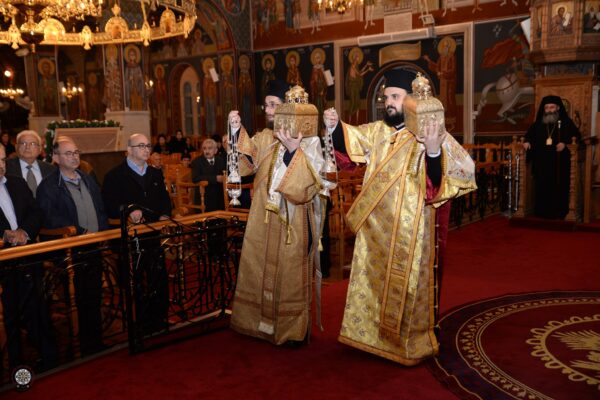 Σε εόρτιο κλίμα και με την προσήκουσα επισημότητα τελέστηκε το απόγευμα της Τρίτης, 31 Δεκεμβρίου 2019, στην προσωρινή έδρα της Ιεράς Μητροπόλεως Κωνσταντίας και Αμμοχώστου στο Παραλίμνι, η ακολουθία του Εσπερινού για την δεσποτική εορτή της Περιτομής του Κυρίου και της μνήμης του Αγίου Βασιλείου, Αρχιεπισκόπου Καισαρείας του Μεγάλου.